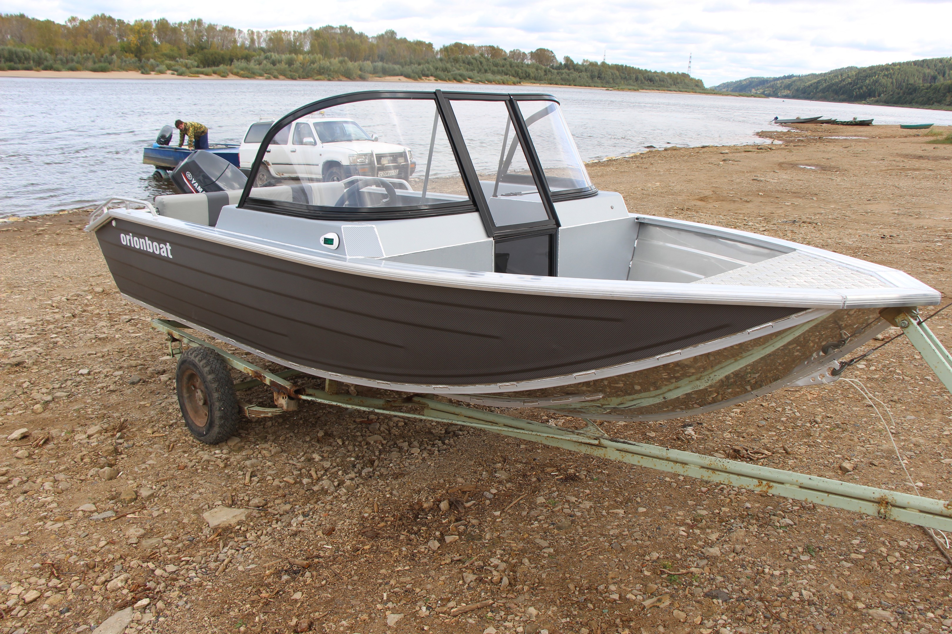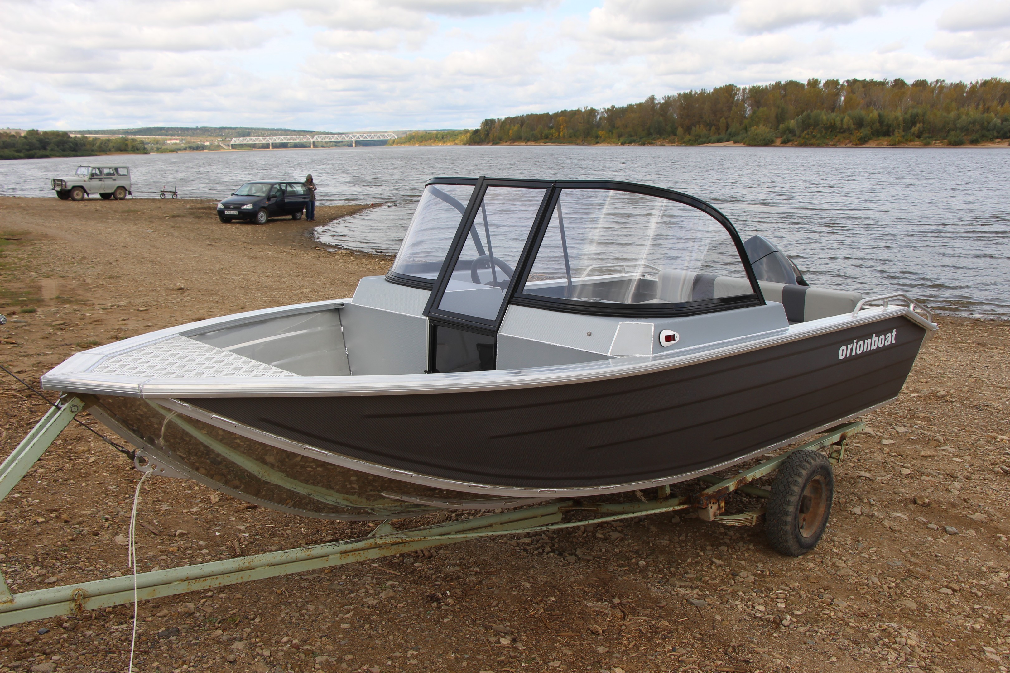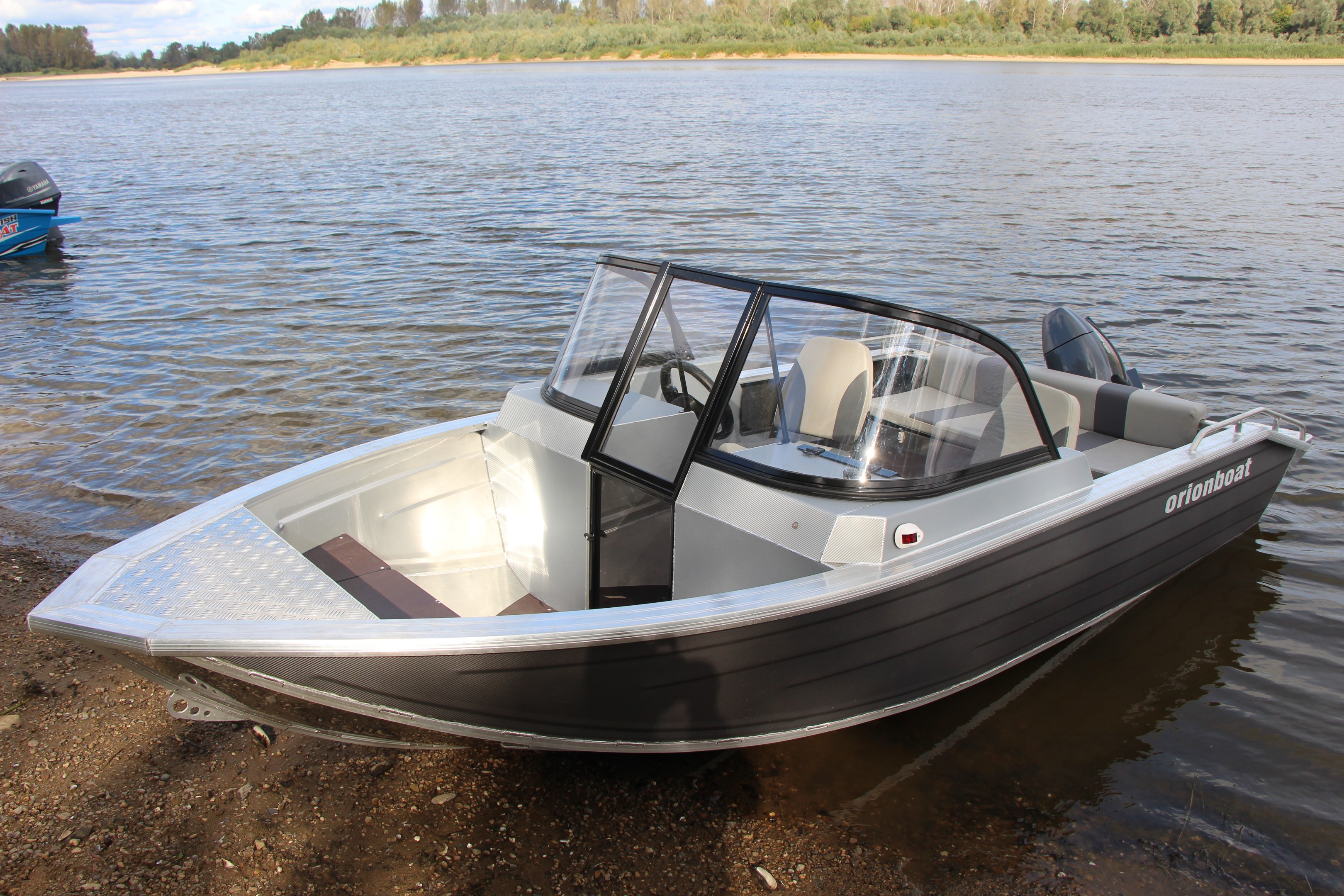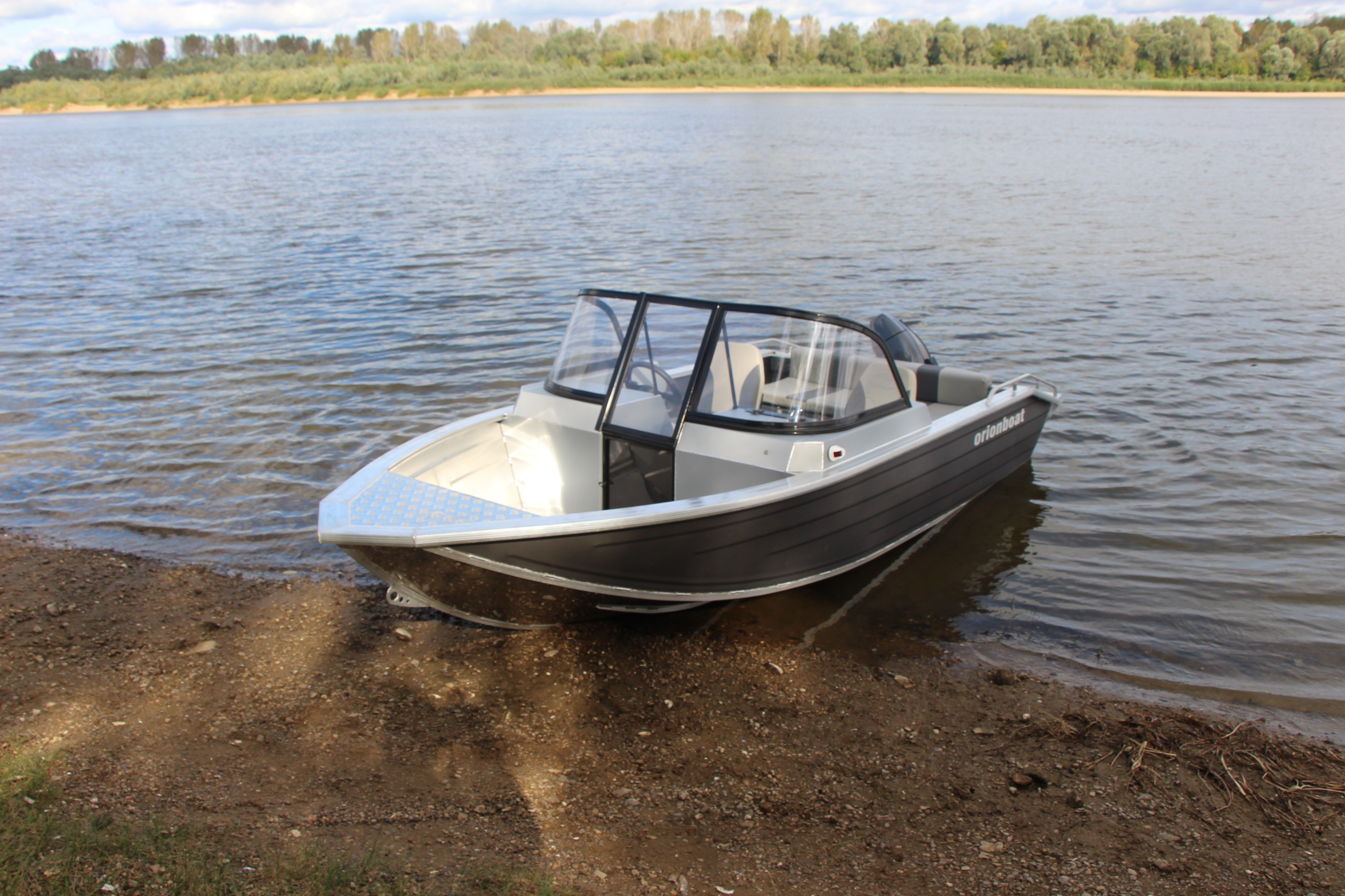 Алюминиевая лодка Orionboat 43FISH двухконсольная, с промежуточными ветровой форточкой. Лодка необходима для прогулок, рыбной ловли, и охоты на реках и озерах в районах с умеренным и холодным климатом при температуре воздуха от -5° С до +40° С. Лодка может использоваться в качестве разъездной, рабочей лодки для представителей различных инспекций. На лодке в качестве двигателя устанавливается подвесной мотор. Вспомогательным источником движения являются распашные весла. Транспортирование лодки может производиться любым видом транспорта с соблюдением правил перевозки грузов, действующих на транспорте.